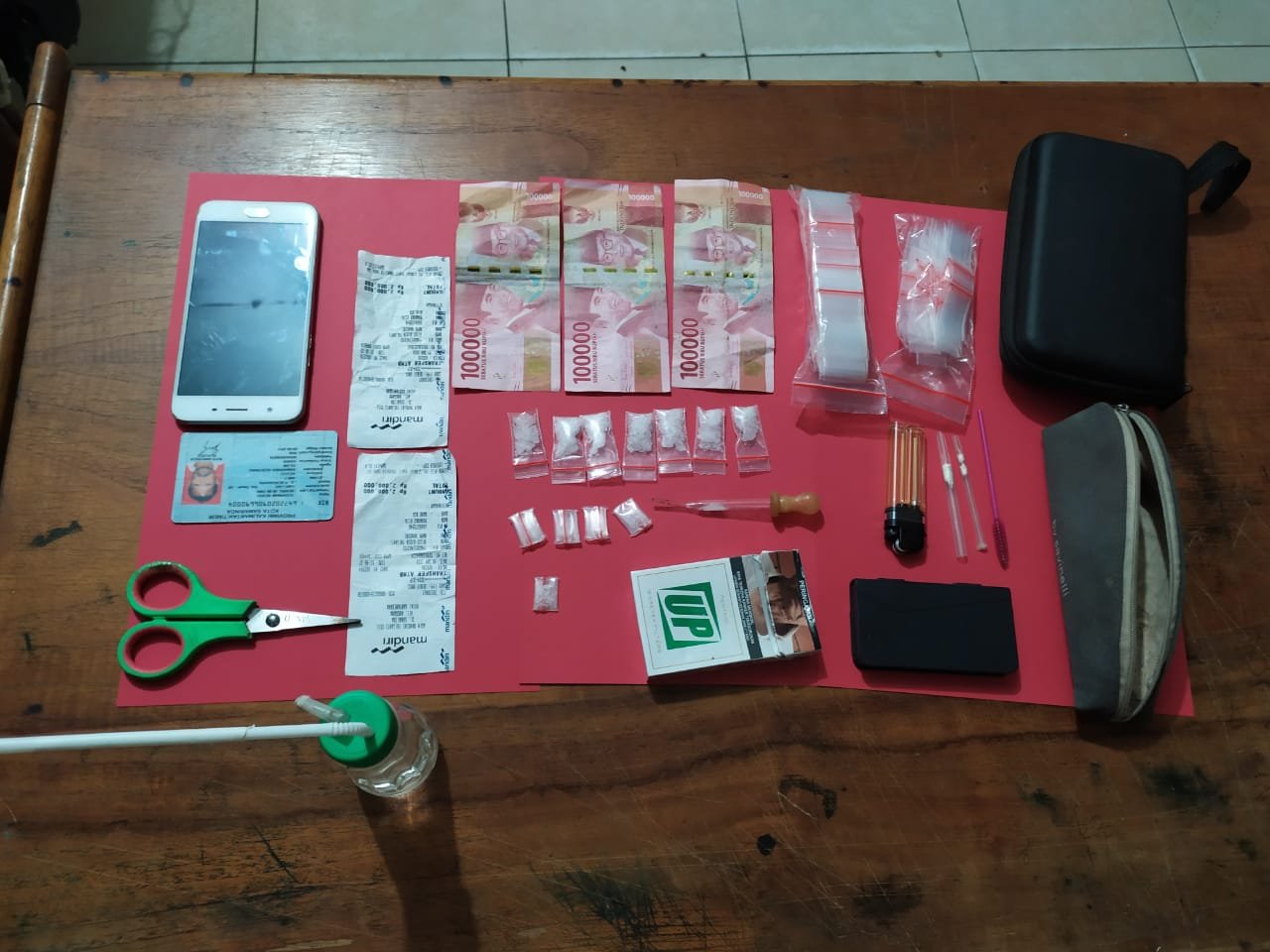 “Dari tangan SU petugas kepolisian berhasil mengamankan 12 poket kecil sabu-sabu dengan berat 5,41 gram, uang tunai Rp. 300.000 dan barang bukti lainnya.” Terang Kombes Pol Ade Yaya Suryana.