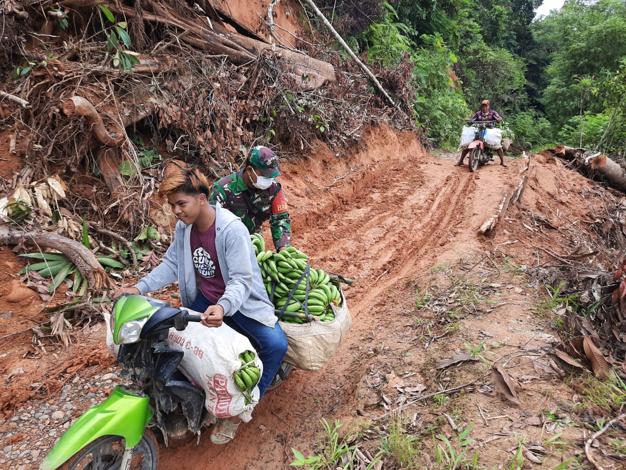 Untuk saat ini jalan hanya bisa dilalui oleh kendaraan roda dua, akan tetapi kondisi jalan masih licin."terangnya.