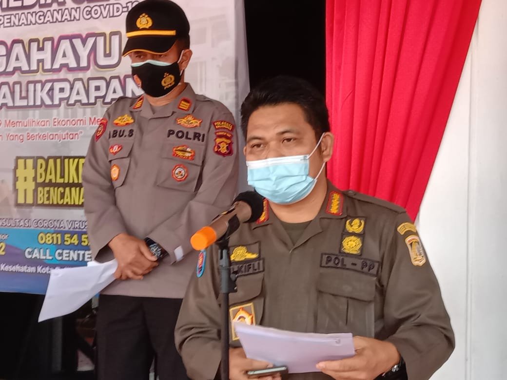 Kepala Bidang Keamanan dan Penegakan Hukum Satgas Covid-19 Kota Balikpapan Zulkifli dalam pres relase update Covid-19 di halaman Pemkot Balikpapan pada Jumat (7/5/2021).