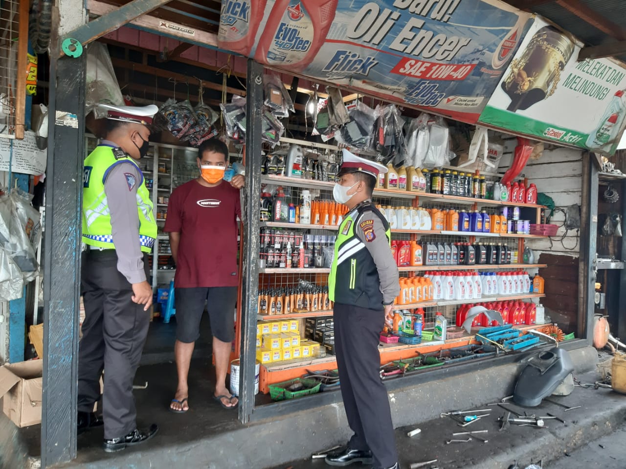 Di Tempat terpisah, anggota Satlantas Polres Kubar pun langsung dikerahkan berkeliling ke bengkel-bengkel ataupun penjual suku cadang kendaraan. Dimana salam sosialisasi tersebut diterima dengan cukup baik oleh para pedagang maupun kepada masyarakat.