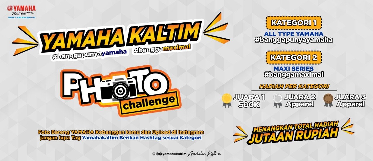 Yamaha Kaltim Photo Challenge ini fotonya sendiri. Dengan hashtag #banggapunyayamaha dan #banggamaximal. Untuk kategori 1 All Type Yamaha dengan hashtag #banggapunyayamaha, sedangkan untuk kategori 2 MAXI serie dengan hasstag #banggamaximal.