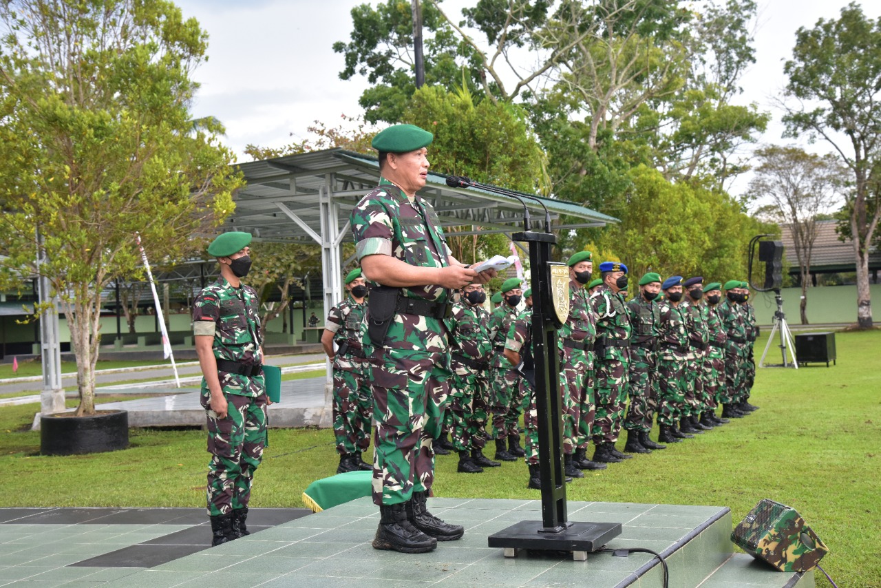 BorneoFlash.com, BALIKPAPAN - Inspektorat Kodam (Irdam) VI/Mlw Brigjen TNI Bambang Indrayanto memimpin Upacara Hari Infanteri ke-73 Tahun 2021 di Lapangan Upacara Markas Batalyon Infanteri Raider 600/Modang, Kelurahan Manggar, BalikpapanTimur pada Minggu (19/12/2021) pagi.