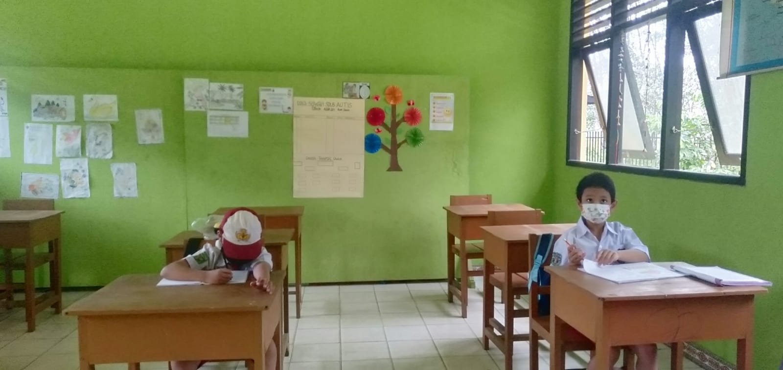 "Mereka ini kan berkebutuhan khusus, jadi disesuaikan dengan kebutuhan masing-masing peserta didik. Kalau mereka tidak bisa turun ke sekolah karena sakit ataupun tidak ingin, kita tidak bisa memaksa," ujarnya.