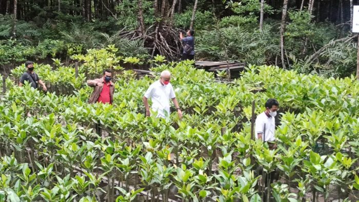 Terkait Mangrove Center Graha Indah, Ganjar menyempatkan diri menelusuri Mangrove Center bersama rombongan KAGAMA Balikpapan dengan menggunakan perahu mesin.