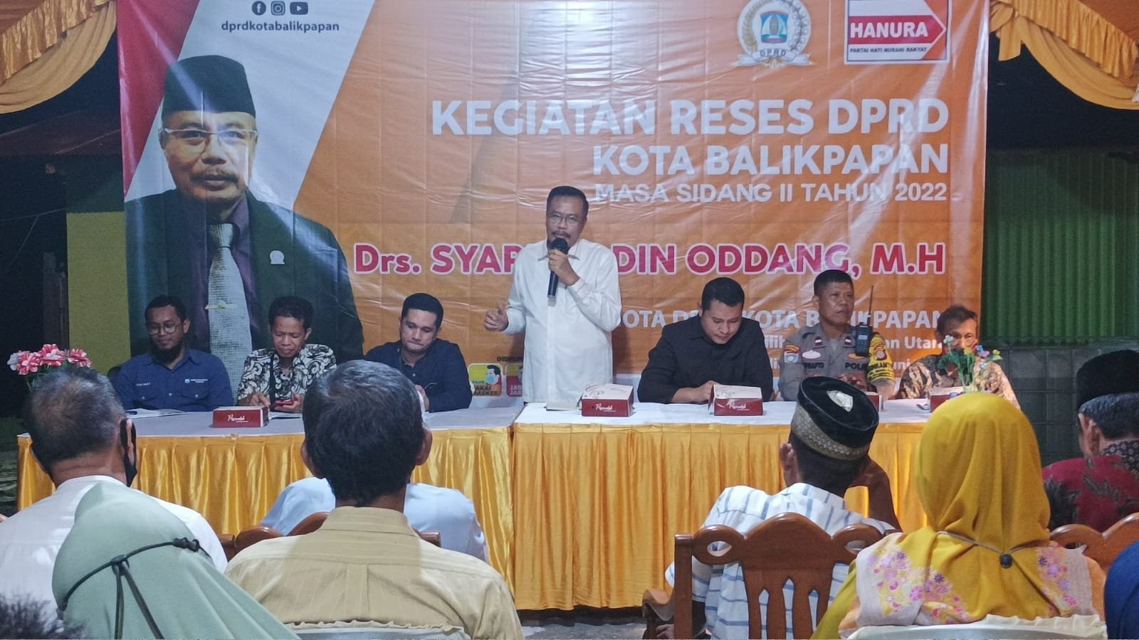 BorneoFlash.com, BALIKPAPAN - Untuk mendengarkan keluhan masyarakat Kelurahan Muara Rapak, Anggota Dewan Perwakilan Rakyat Daerah (DPRD) Balikpapan Syarifuddin Oddang menggelar reses masa persidangan II tahun 2022 dengan bertatap muka bersama warga dari RT 02, RT 12, RT 49, RT 55 Kelurahan Muara Rapak Kecamatan Balikpapan Utara, Senin (20/6/2022) malam.