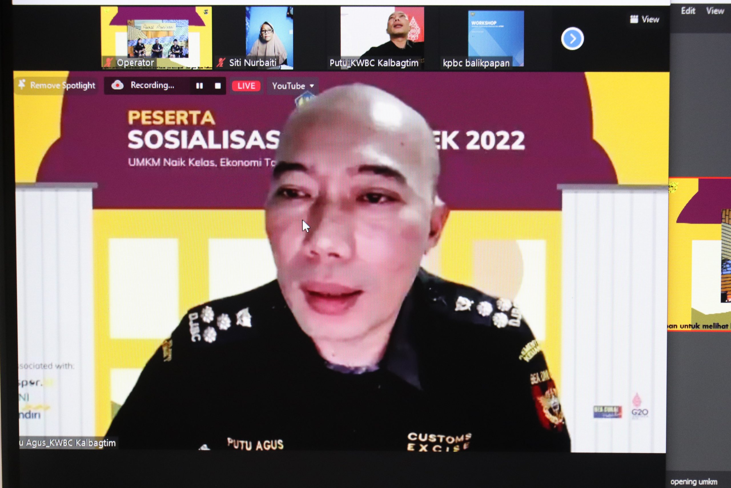 BorneoFlash.com, BALIKPAPAN – Kanwil Bea Cukai kalbagtim bersama Bea Cukai Balikpapan Sosialisasikan UMKM Week 2022 Tema UMKM Naik Kelas Ekonomi Tancap Gas, pada Rabu (22/06/2022).