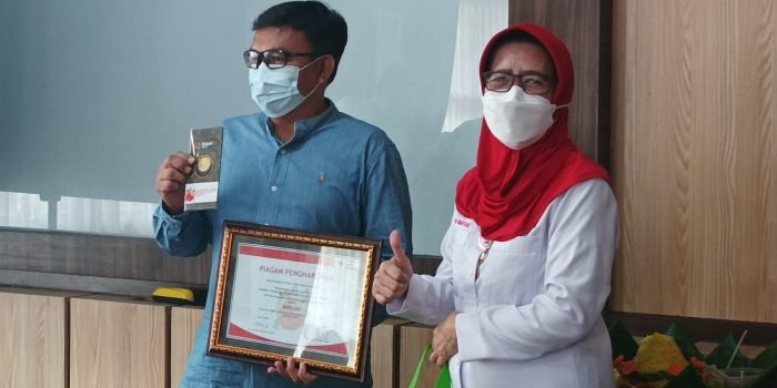 PMI Kota Balikpapan melakukan tasyakuran dengan pemotongan tumpeng dan pemberian penghargaan kepada para pendonor darah, di Ruang Rapat Utama PMI Balikpapan, Senin (28/6/2022). Foto: BorneoFlash.com/Niken.