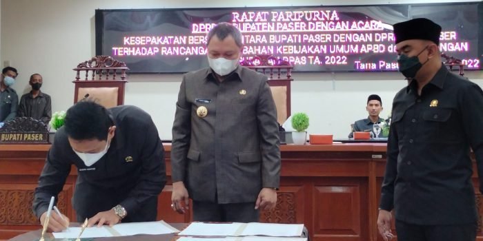 Bupati Paser dr. Fahmi Fadli saat Penandatangan Kesepakatan bersama Rancangan Perubahan KUA dan Rancangan Perubahan PPAS Tahun Anggaran 2022. Foto: HO/Pemkab Paser.