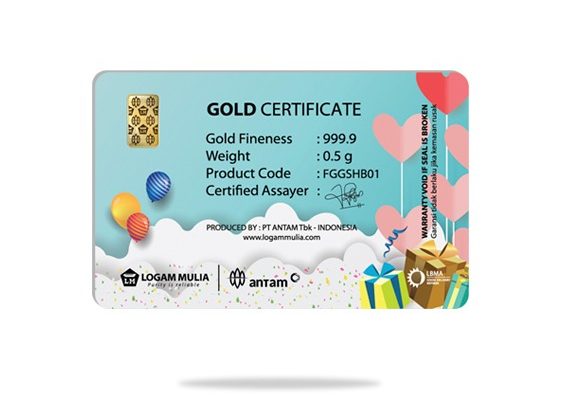 Bila kamu mau membagikan hadiah kepada sahabat yang lagi ulang tahun, emas antam yang satu ini sangat sesuai. Kemasan berupa kartu bercorak biru muda dengan dihiasi balon serta kado khas ulang tahun nampak begitu menarik. Tidak hanya itu, terdapat pula wujud awan serta love yang menghiasi kemasan antam gift series birthday ini.