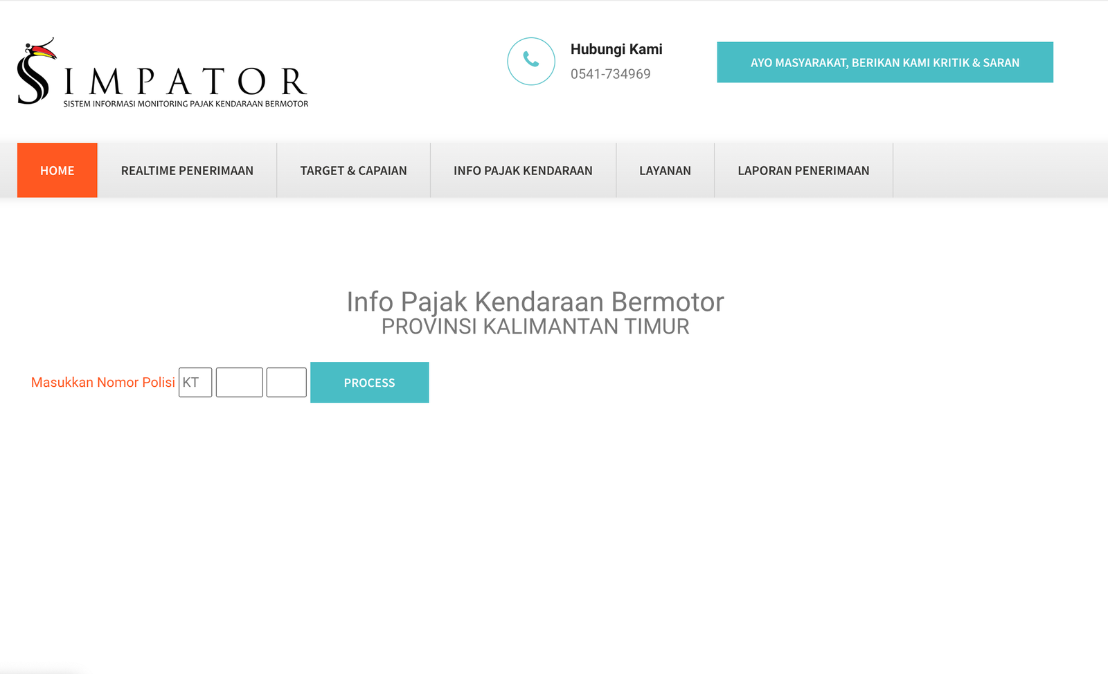 Untuk pengecekan lewat website sendiri sangatlah mudah, Anda tinggal buka link http://simpator.kaltimprov.go.id/cari.php lalu menuju ke Kanal Info Pajak Kendaraan, isi kode plat kendaraan Anda. Lalu masukan nomor pelat yaitu angka pada plat nomornya, selanjutnya masukan dua huruf terakhir pada plat kendaraan. Selanjutnya pilih warna TNKB kendaraan Anda. Lalu masukkan Captcha dan klik “cari”