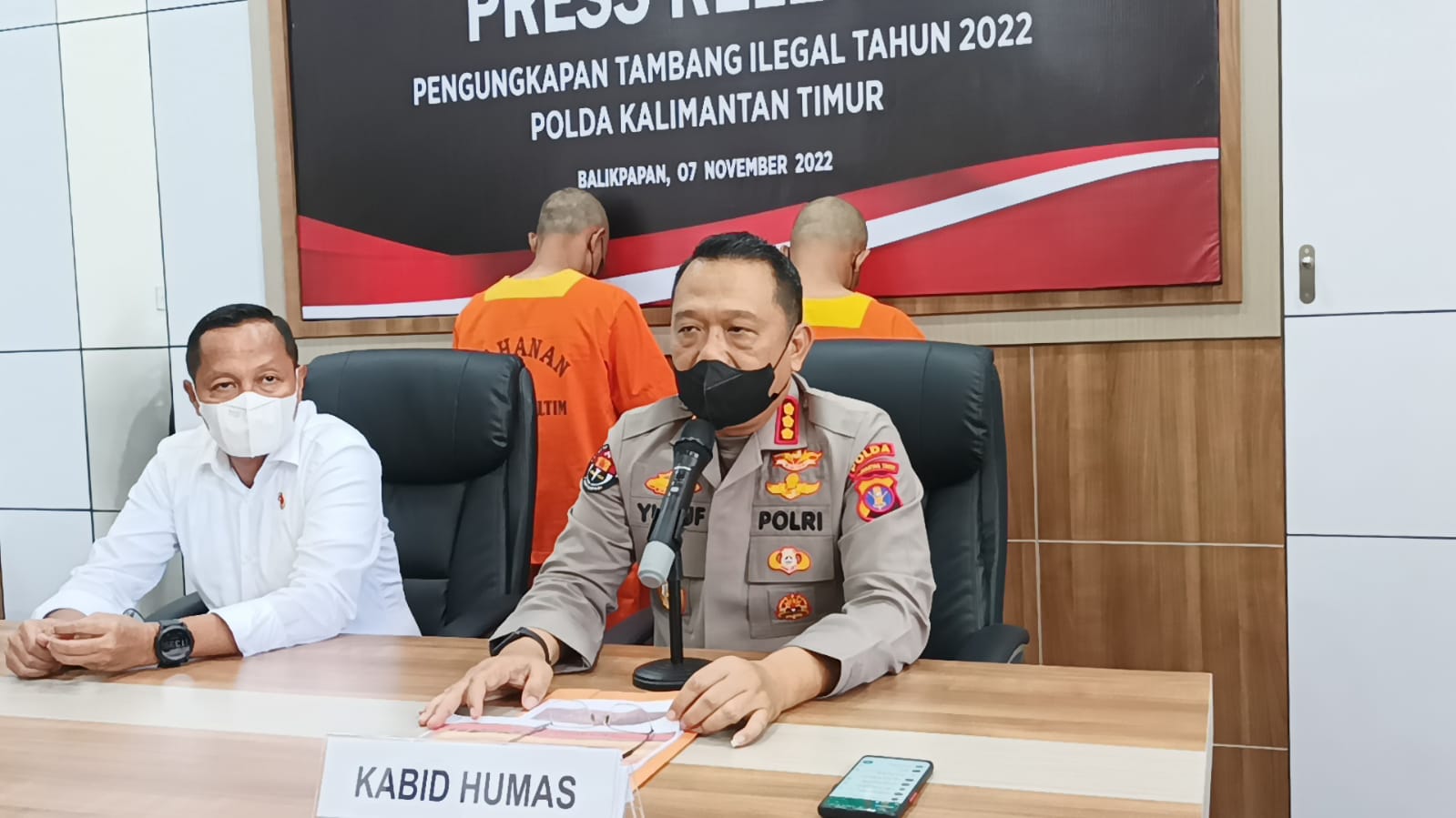 BorneoFlash.com, BALIKPAPAN - Kepolisian Daerah (Polda) Kalimantan Timur (Kaltim) melalui Direktorat Reserse Kriminal Khusus (Ditreskrimsus) mengungkap kasus tambang ilegal tahun 2022, di ruang Reskoba Polda Kaltim, pada hari Senin (7/11/2022).