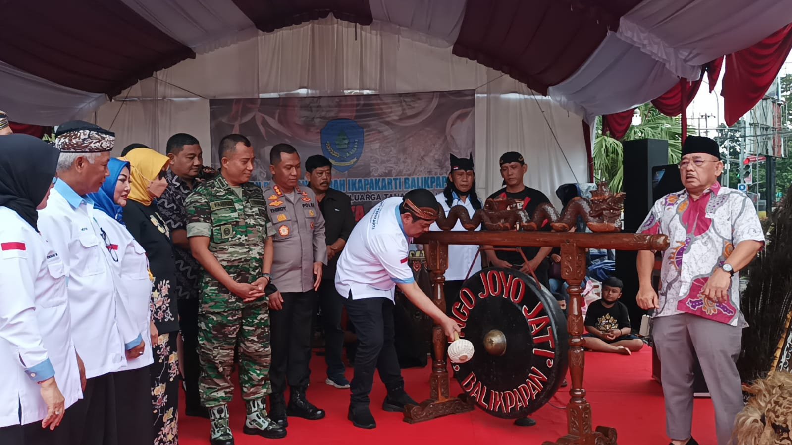 BorneoFlash.com, BALIKPAPAN - Dengan pemukulan gong, Ketua Dewan Pimpinan Daerah (DPD) Ikatan Paguyuban Keluarga Tanah Jawi (Ikapakarti) Kota Balikpapan H Abdulloh, S.Sos, membuka Gebyar Budaya dan Kuliner, di Halaman Parkir Balikpapan Sport Convention Center (BSCC/DOME), Sabtu (3/12/2022).