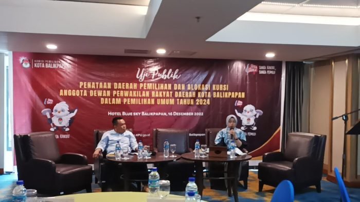 BorneoFlash.com, BALIKPAPAN – Komisi Pemilihan Umum (KPU) Kota Balikpapan menggelar Uji Publik Penataan Daerah Pemilihan (Dapil) dan Alokasi Kursi Anggota Dewan Perwakilan Rakyat Daerah (DPRD) Kota Balikpapan dalam Pemilihan Umum Tahun 2024, di Hotel Blue Sky Balikpapan, pada hari Jumat (16/12/2022).