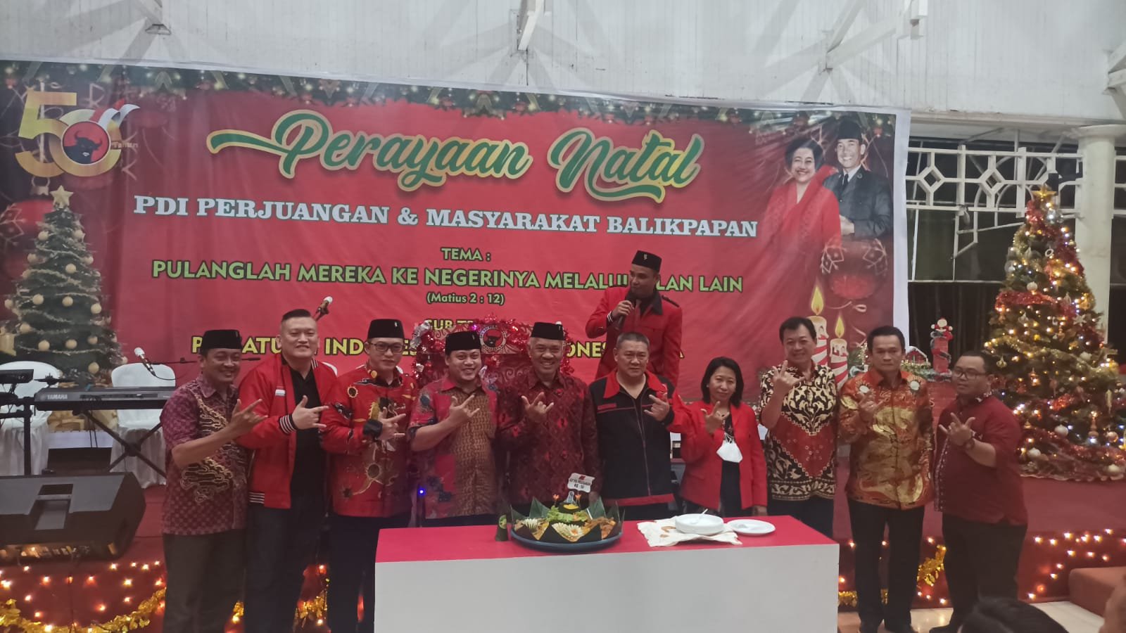 Perayaan Natal ini dirangkai dengan perayaan Hari Ulang Tahun (HUT) ke 50 PDI Perjuangan dengan tema Persatuan untuk Indonesia Raya, ditandai dengan pemotongan tumpeng oleh Ketua DPC PDI Perjuangan Kota Balikpapan, Budiono.