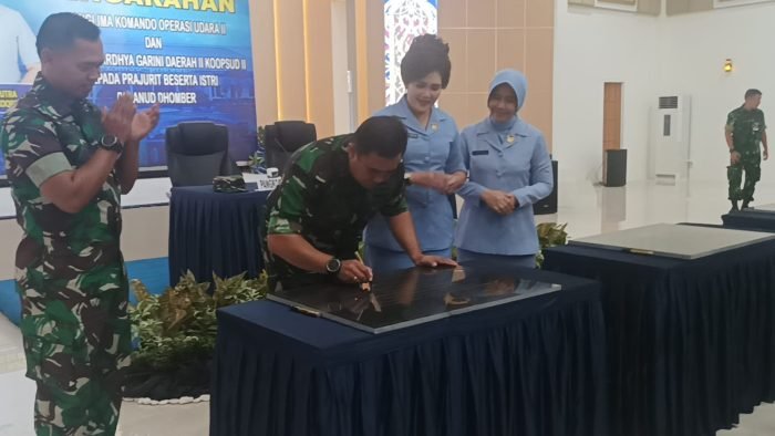 Dalam kesempatan itu, Panglima Komando Operasi Udara II, Marsekal Muda TNI Widyargo Ikoputra menandatangani tiga prasasti, salah satunya prasasti gedung.