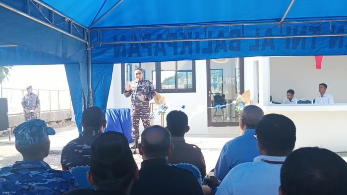 BorneoFlash.com, BALIKPAPAN – Danlantamal XIII/Tarakan, Laksamana Pertama TNI Deni Herman meresmikan Posko TNI Angkatan Laut (AL) Pengamanan Jalur Logistik Laut ke Ibu Kota Negara (IKN), di Dermaga Melawai Balikpapan, Jalan Yos Sudarso Kelurahan Prapatan, Kecamatan Balikpapan Kota, Selasa (21/2/2023).