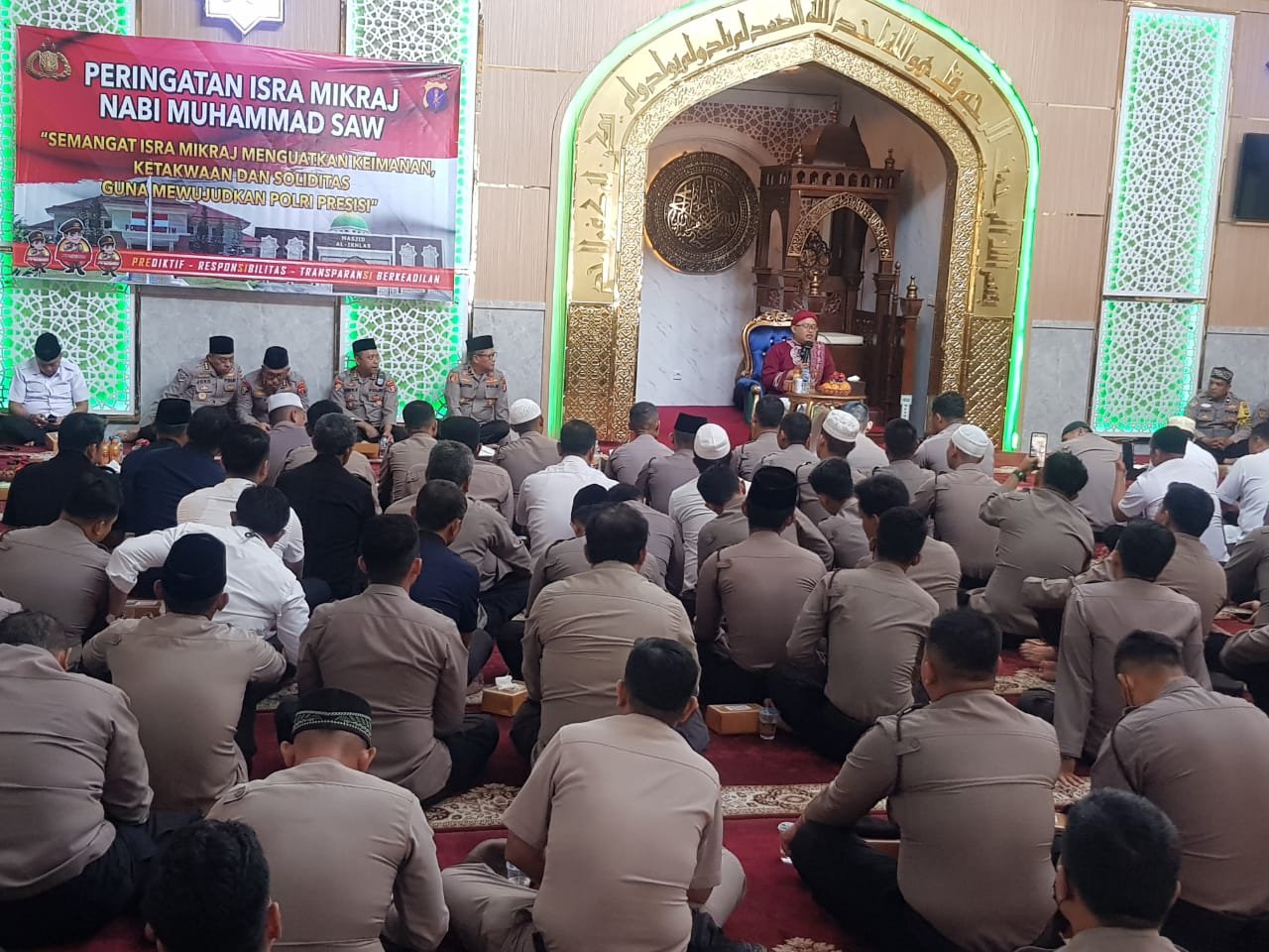 Peringatan Isra Mi’raj Nabi Muhammad SAW 1444 H / 2023 M yang bertemakan “Semangat Isra Mi’raj menguatkan keimanan, ketakwaan dan soliditas guna mewujudkan Polri Presisi,” dihadiri oleh Wakapolda Kaltim Brigjen Pol Drs. Mujiyono, S.H., M.Hum, di dampingi Pejabat Utama Polda Kaltim dan dihadiri oleh Personel Polda Kaltim.