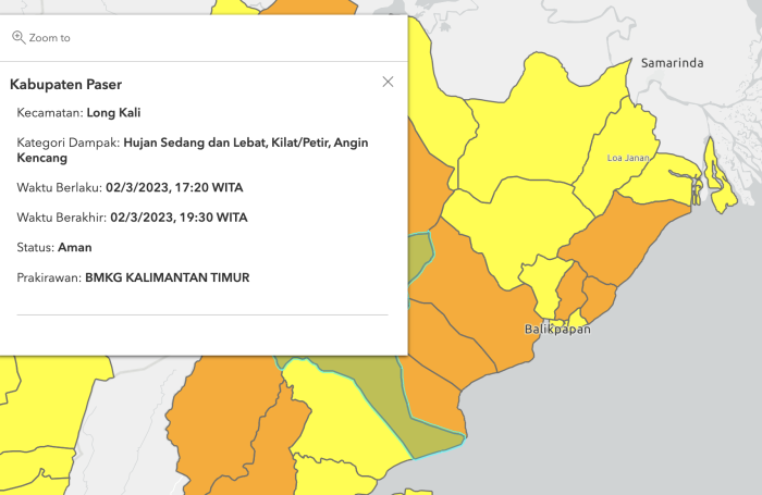BorneoFlash.com, INFO CUACA – BMKG mengeluarkan peringatan dini cuaca untuk wilayah Kalimantan Timur pada tanggal 2 Maret 2023 pukul 16.47 Wita.