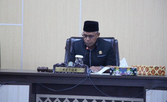 Wakil Ketua DPRD Balikpapan Subari dan Sekretaris Daerah Kota Balikpapan Muhaimin memimpin rapat paripurna, di Ruang Rapat Paripurna DPRD Balikpapan pada hari Senin (17/4/2023) sore. Foto: Niken/BorneoFlash.com