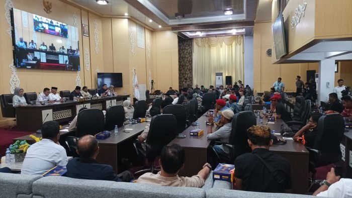 Audensi di terima Ketua DPRD Balikpapan H Abdulloh didampingi Wakil Ketua DPRD Balikpapan Budiono; Ketua Komisi IV DPRD Balikpapan, Doris Eko; Sekretaris Dinas Ketenagakerjaan Balikpapan Agung Budi Wibowo, Kepala Cabang BPJS Ketenagakerjaan Balikpapan, I Nyoman Hary Sujana.