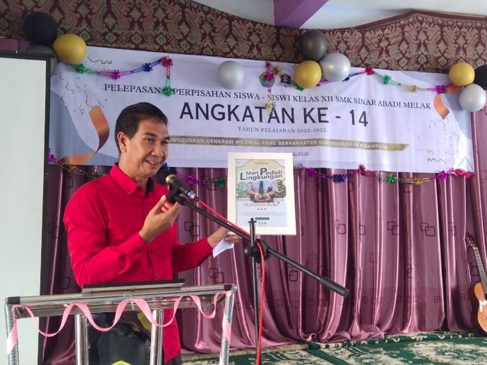 Pembina Sekolah SMK Sinar Abadi, H. Awang Suriansyah saat menyampaikan sambutan. Foto: Lilis/BorneoFlash.com
