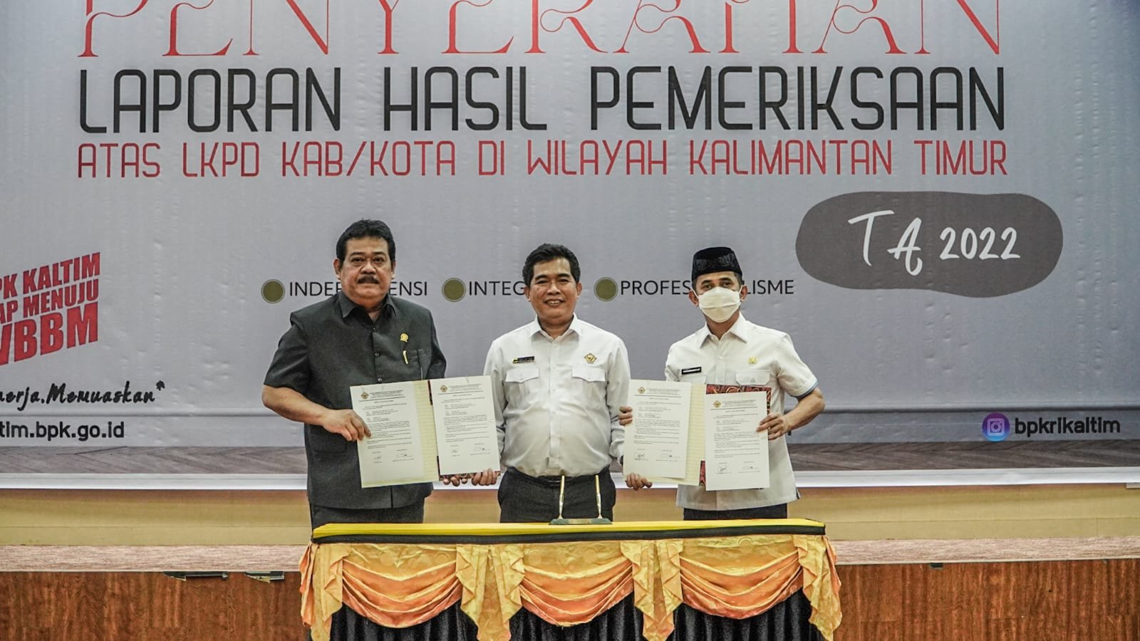 Ketua DPRD Kota Balikpapan Abdulloh, S.Sos dan Wali Kota Balikpapan, H.Rahmad Masud, S.E ., M.E menerima laporan hasil pemeriksaan BPK atas Laporan Keuangan Pemerintah Kota Balikpapan Tahun 2022 atas Sistem Pengendalian Intern dan Kepatuhan Terhadap Ketentuan Peraturan Perundang- Undangan, yang diserahkan langsung oleh Kepala BPK RI Perwakilan Provinsi Kaltim Bapak Agus Priyono, S.E., M.E. Ak. CA. CSFA.