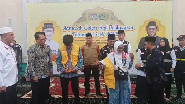 Keberangkatan ratusan jamaah haji Balikpapan dilepas langsung oleh Wali Kota Balikpapan H Rahmad Mas’ud didampingi Kepala Kantor Kementerian Agama Kota Balikpapan, H Johan Marpaung, di Masjid Madinatul Iman Islamic Center, pada hari Kamis (25/5/2023) yang ditandai dengan penyematan rompi bertuliskan Jamaah Haji Kota Balikpapan 2023 M/1444 H.