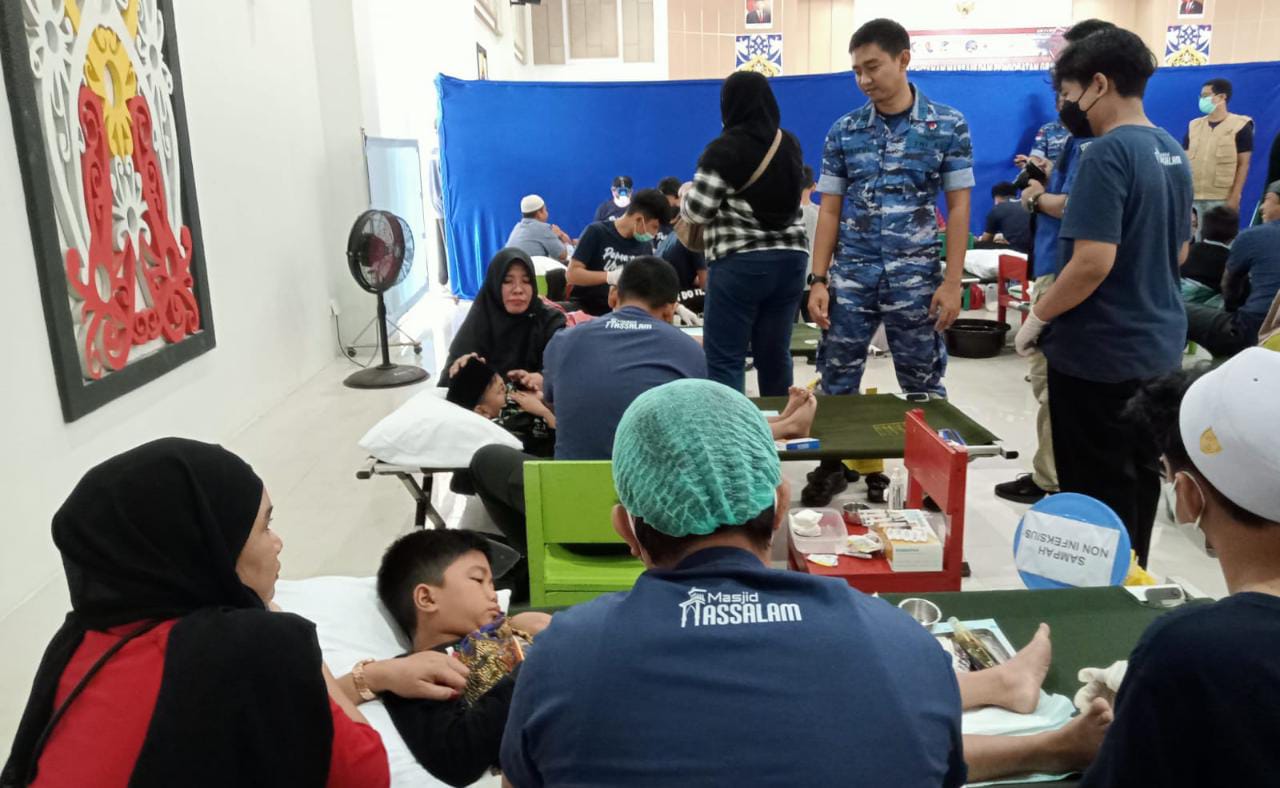 BorneoFlash.com, BALIKPAPAN - Lanud Dhomber gelar Bakti Sosial Pengobatan dan Khitanan Massal, dalam rangka Hari Bhakti TNI Angkatan Udara (TNI AU) Ke-76 Tahun 2023.