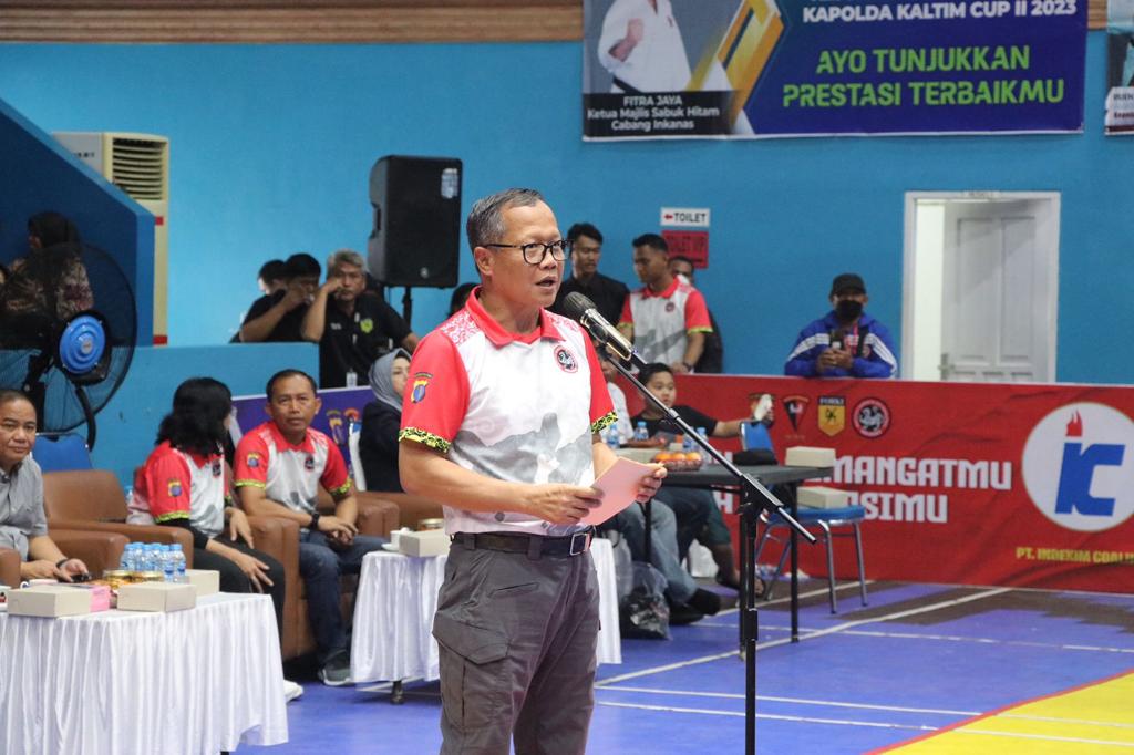 BorneoFlash.com, BALIKPAPAN - Wakapolda Kalimantan Timur (Kaltim) Brigjen Pol Mujiyono, memimpin pembukaan Kejuaraan Karate Inkanas Kapolda Kaltim CUP II 2023 pada hari Kamis, (28/9/2023).