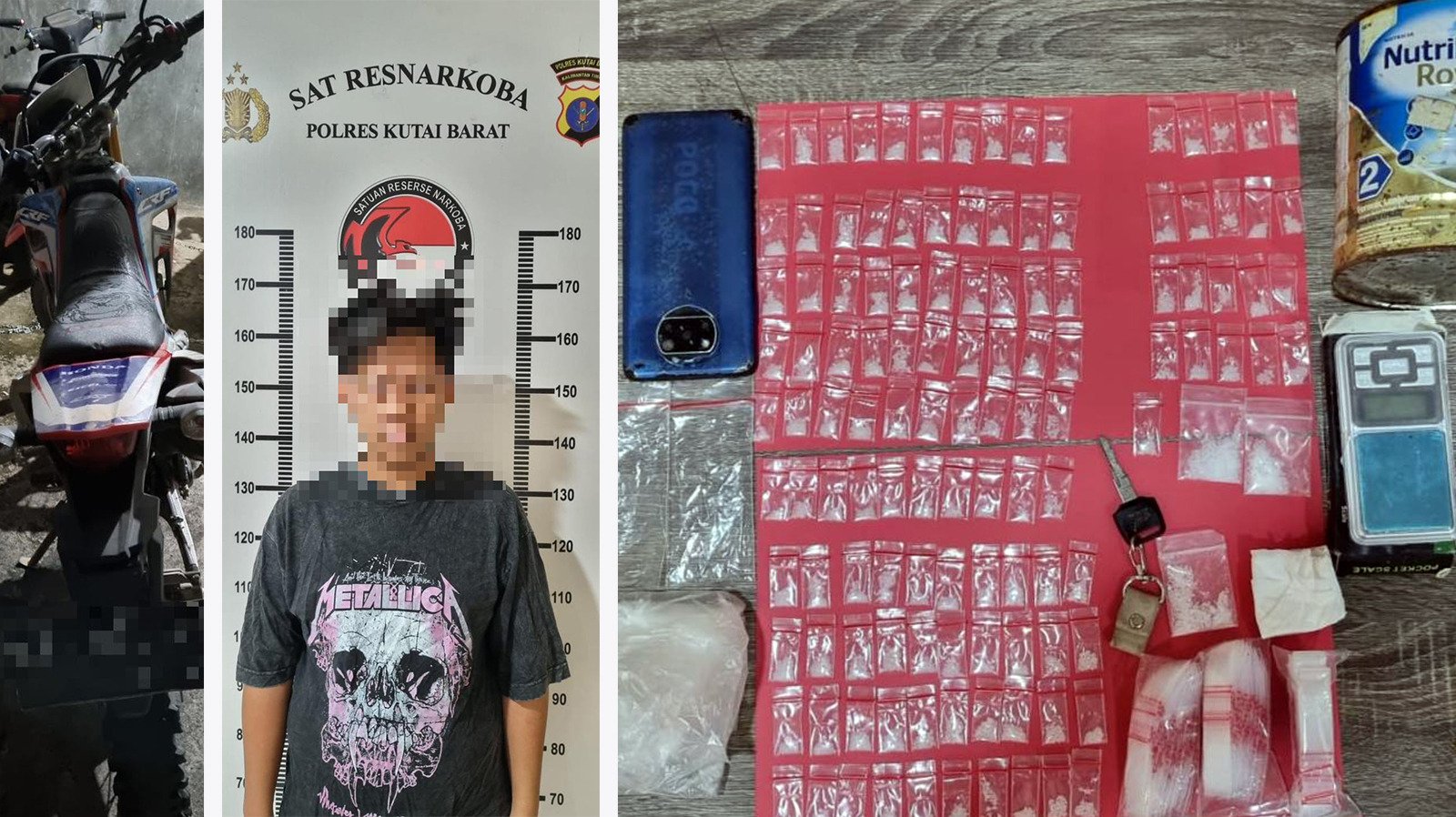 Kemudian terdapat 1 buah timbangan digital, 1 Unit Hp merk POCO yang digunakan pelaku bertransaksi narkotika tersebut, dan 1 Unit motor CRF, sebagai sarana transportasi pengambilan Narkotika tersebut.