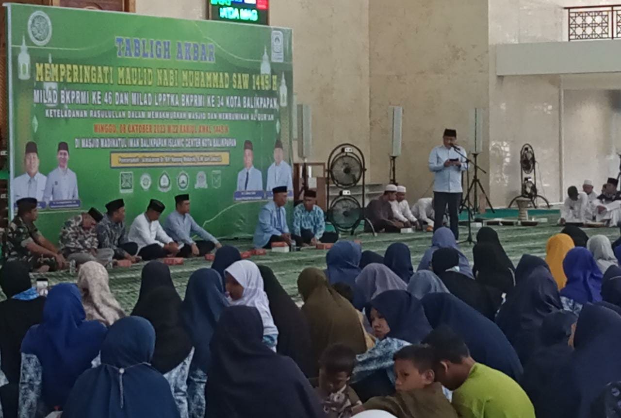 BorneoFlash.com, BALIKPAPAN - Lembaga Pembinaan dan Pengembangan TK Al Quran (LPPTKA) Badan Komunikasi Pemuda Remaja Masjid Indonesia (BKPRMI) Kota Balikpapan, menggelar peringatan Maulid Nabi Muhammad SAW 1445 Hijriah, di Masjid Madinatul Iman Balikpapan Islamic Center, pada hari Minggu (8/10/2023).