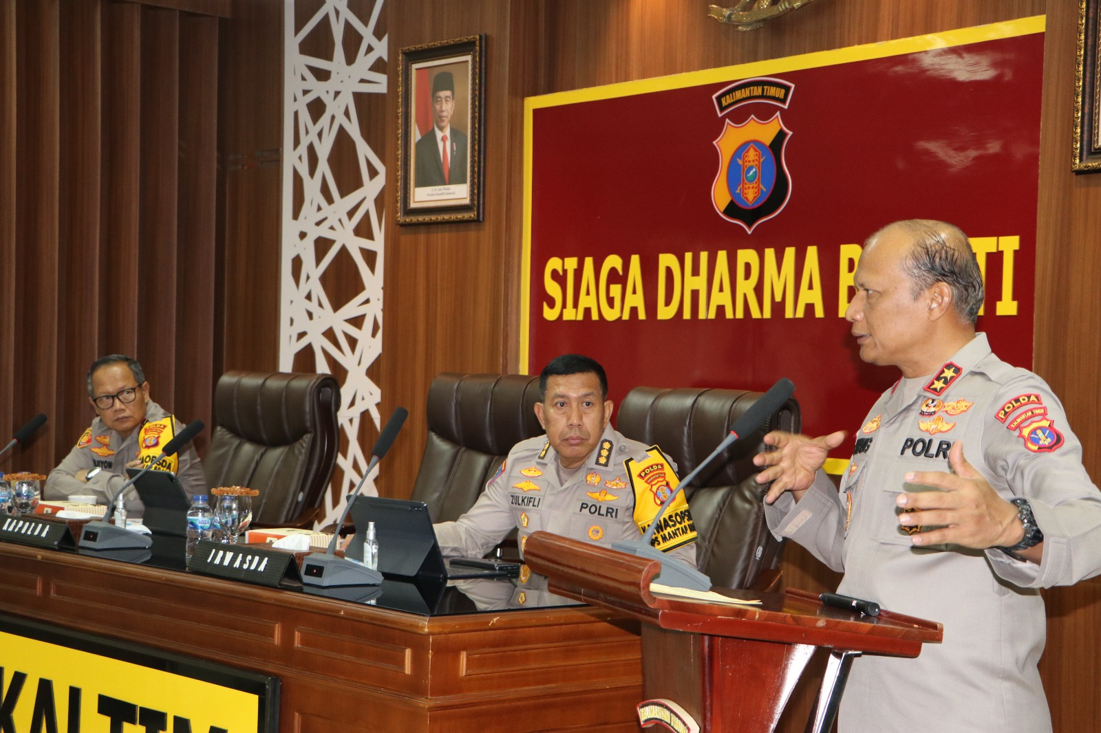 Rapat tersebut juga dihadiri Wakapolda Kaltim, Brigjen Pol Mujiyono, Irwasda Polda Kaltim, Kombes Pol. Zulkifli dan para pejabat utama Polda Kaltim. Selain itu, para Kasatwil jajaran juga bergabung dalam rapat ini melalui konferensi video.