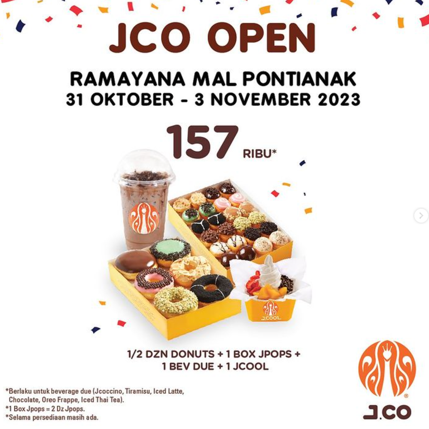 Untuk merayakan pembukaan gerai baru ini, J.CO Donuts & Coffee menawarkan promo grand opening yang berlaku mulai tanggal 31 Oktober hingga 3 November 2023.
