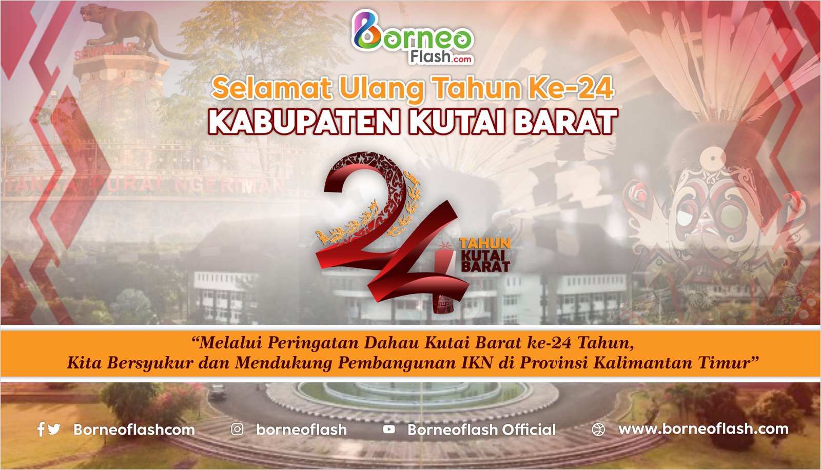 BorneoFlash.com, SENDAWAR - Manajemen BorneoFlash.com mengucapkan Selamat Hari Ulang Tahun (HUT) ke 24 Kabupaten Kutai Barat, Minggu 5 November 2023.