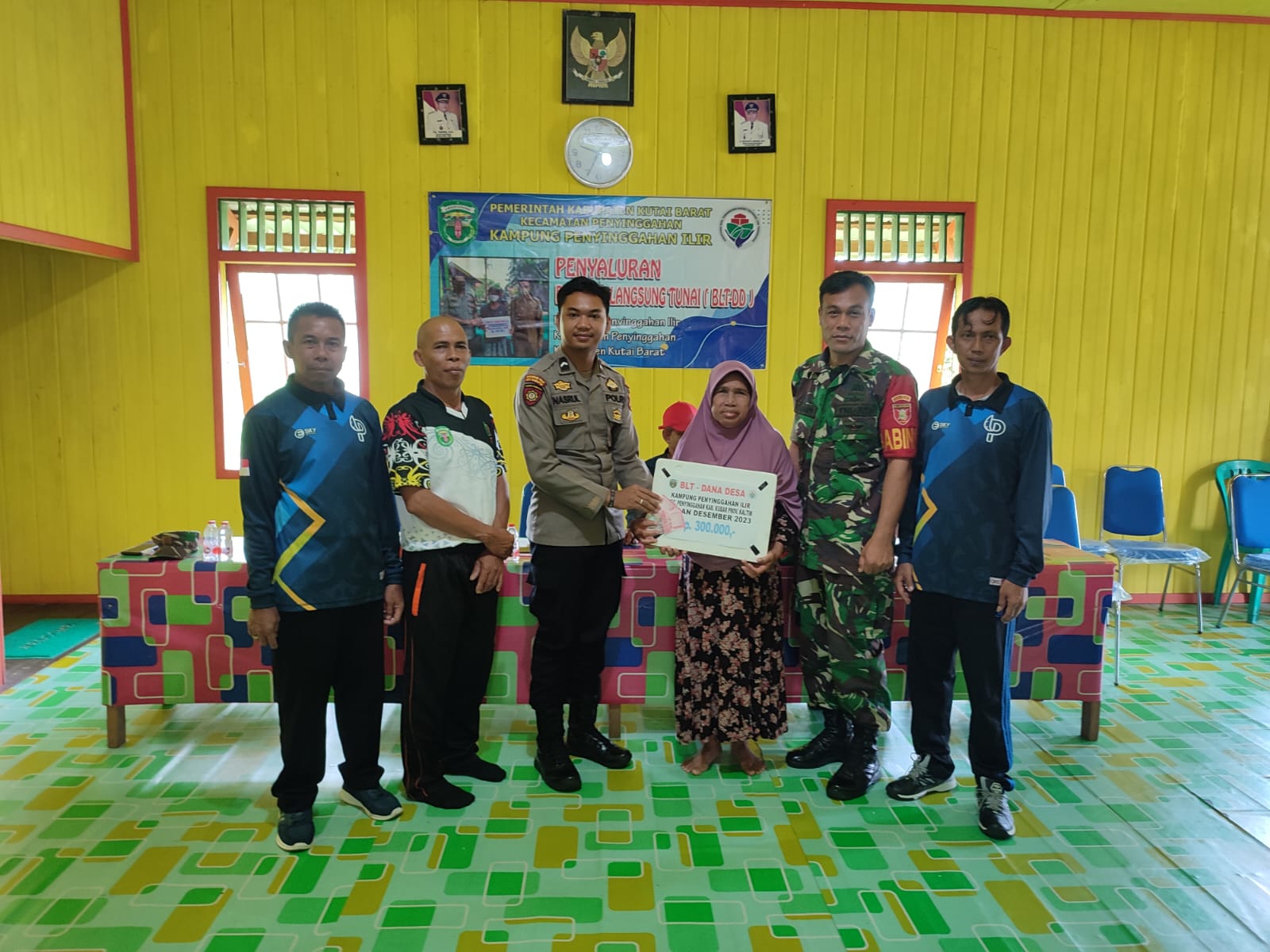 Personel Polsek Bripda Nasrul melaksanakan pam giat penyaluran Bantuan Langsung Tunai Dana Desa (BLT–DD) periode November dan Desember 2023 di kantor Kampung Penyinggahan Ilir Kabupaten Kutai Barat, Jum'at (24/11/2023).