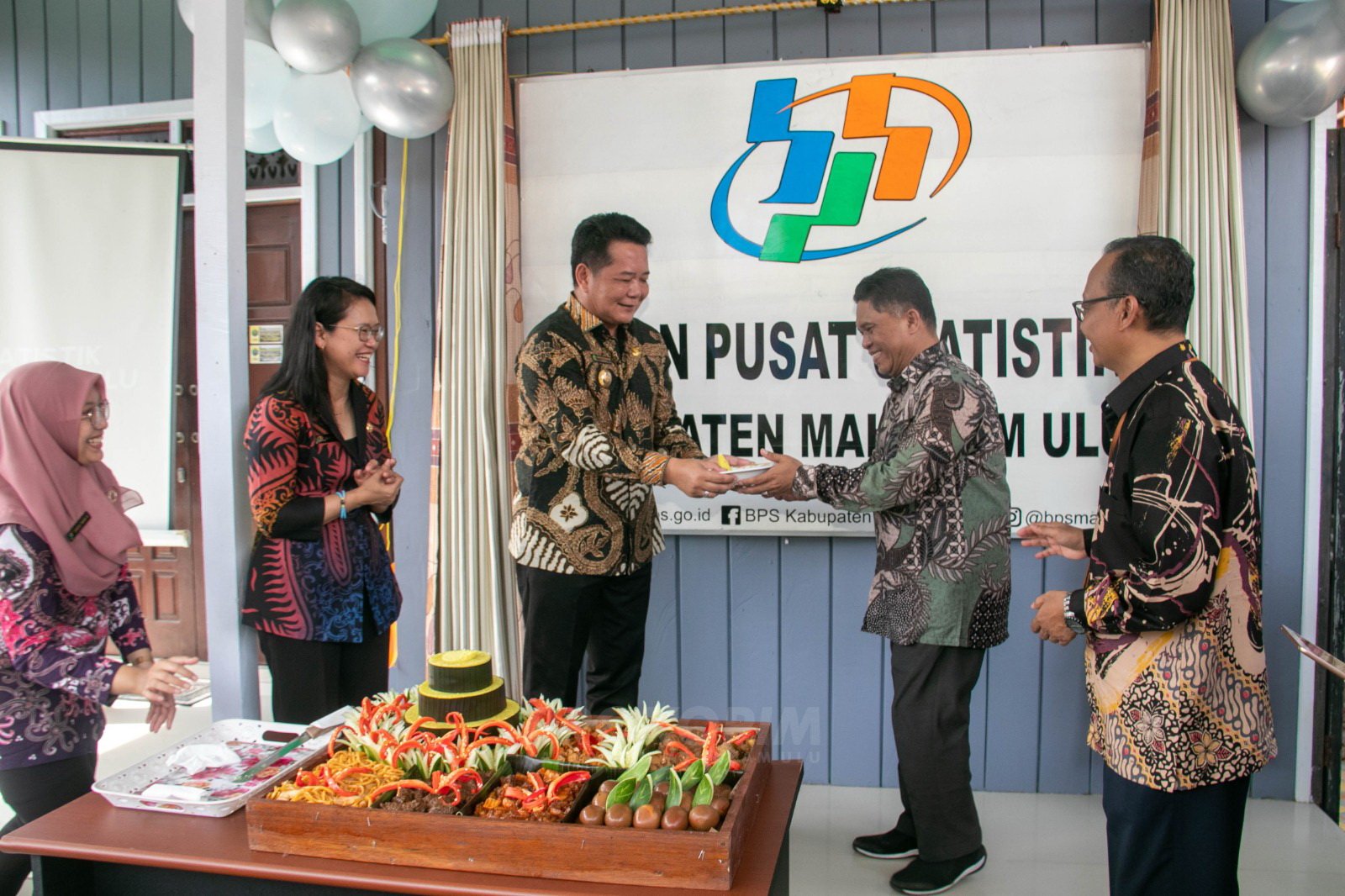 Diawali dengan sambutan dan perkenalan dari Kepala BPS Kabupaten Mahulu, dilanjutkan pembukaan selubung papan nama Kantor BPS, serta pemotongan tumpeng oleh Bupati Mahulu.