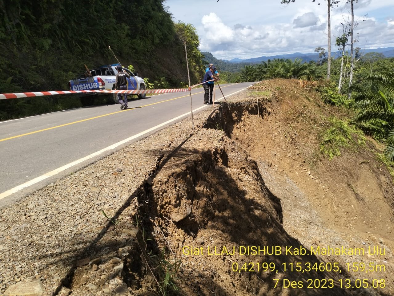BorneoFlash.com, UJOH BILANG - Anggota Lalu Lintas dan Angkutan Jalan (LLAJ) Dinas Perhubungan (Dishub) Kabupaten Mahakam Ulu (Mahulu) turut ambil bagian dalam upaya meningkatkan keselamatan di ruas jalan Long Melaham - Mambes yang diketahui rawan longsor.