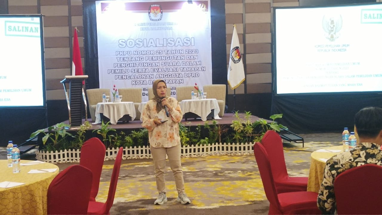 Sosialisasi tersebut disampaikan Komisioner Komisi Pemilihan Umum (KPU) Balikpapan, Mega Fariany Ferry, di Swiss Belhotel Balikpapan, pada hari Sabtu (23/12/2023) kepada partai politik (Parpol) di Kota Balikpapan.