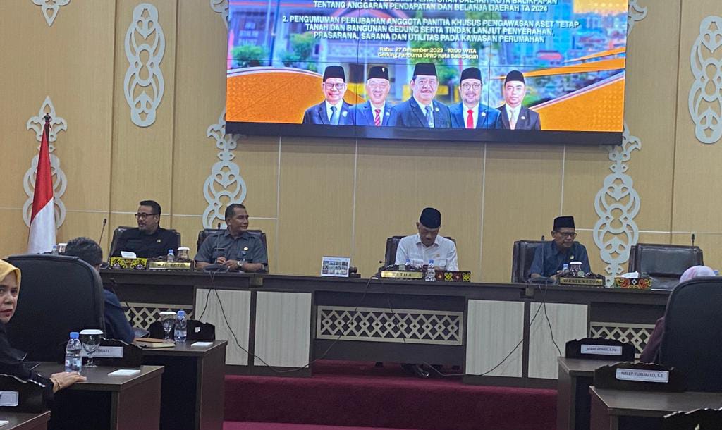 Rapat paripurna mengesahkan Peraturan Daerah Kota Balikpapan terkait Anggaran Pendapatan dan Belanja Daerah Tahun 2024. Selain itu, ada perubahan anggota Panitia Khusus Pengawasan Aset Tetap dan penindaklanjuti penyerahan prasarana di kawasan perumahan.