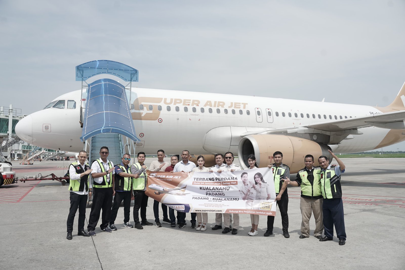 BorneoFlash.com, KUALANAMU - SUPER AIR JET, maskapai penerbangan berbiaya rendah yang menyasar generasi milenial, resmi meluncurkan rute baru Medan - Padang. Penerbangan perdana rute ini dimulai pada Rabu (24/1/2024).