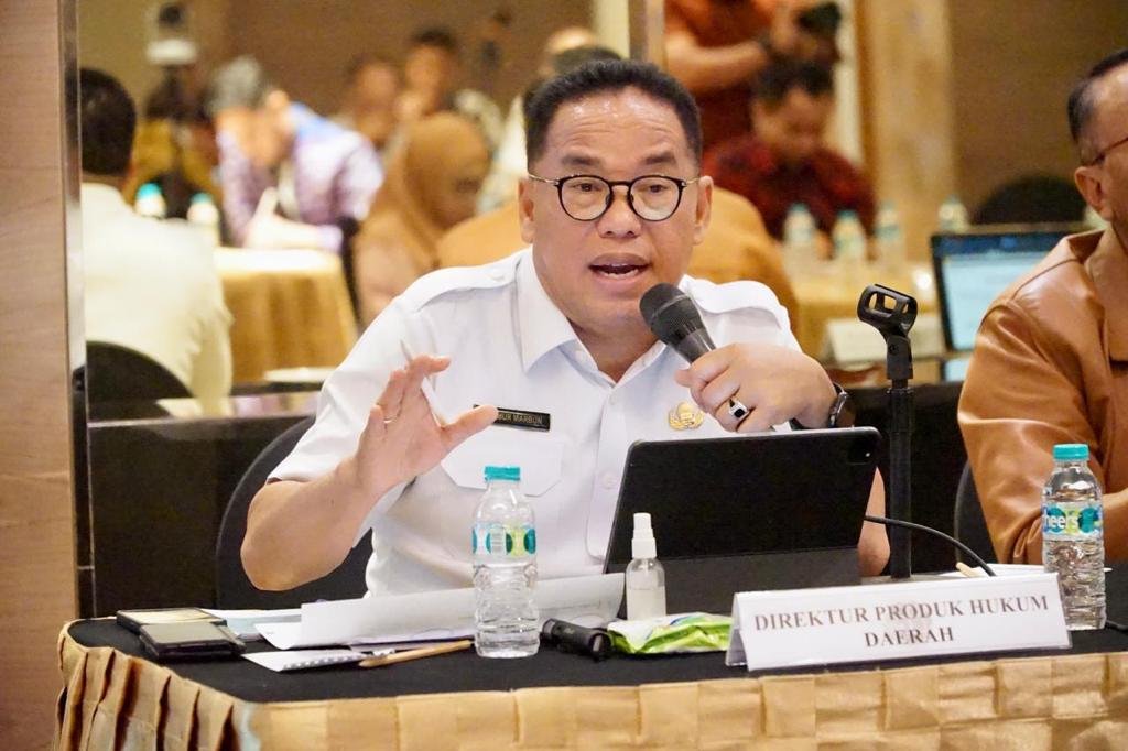 Makmur Marbun yang sekaligus sebagai Direktur Produk Hukum Daerah (PHD) Kemendagri menjadi narasumber dalam forum rapat koordinasi yang diikuti sejumlah provinsi yang terdiri dari Pulau Kalimantan, Sulawesi, Nusa Tenggara, Maluku dan Papua baik secara offline maupun online.