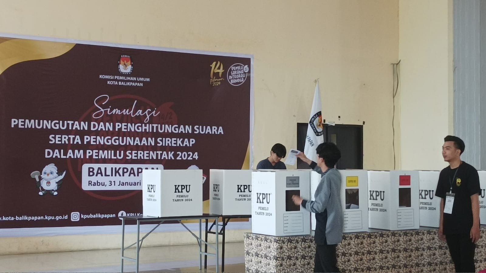 Simulasi kedua, dalam rangka Pemilihan Umum (Pemilu) tahun 2024 berlangsung di Gedung Parkir Klandasan Balikpapan, pada hari Rabu (31/1/2024).