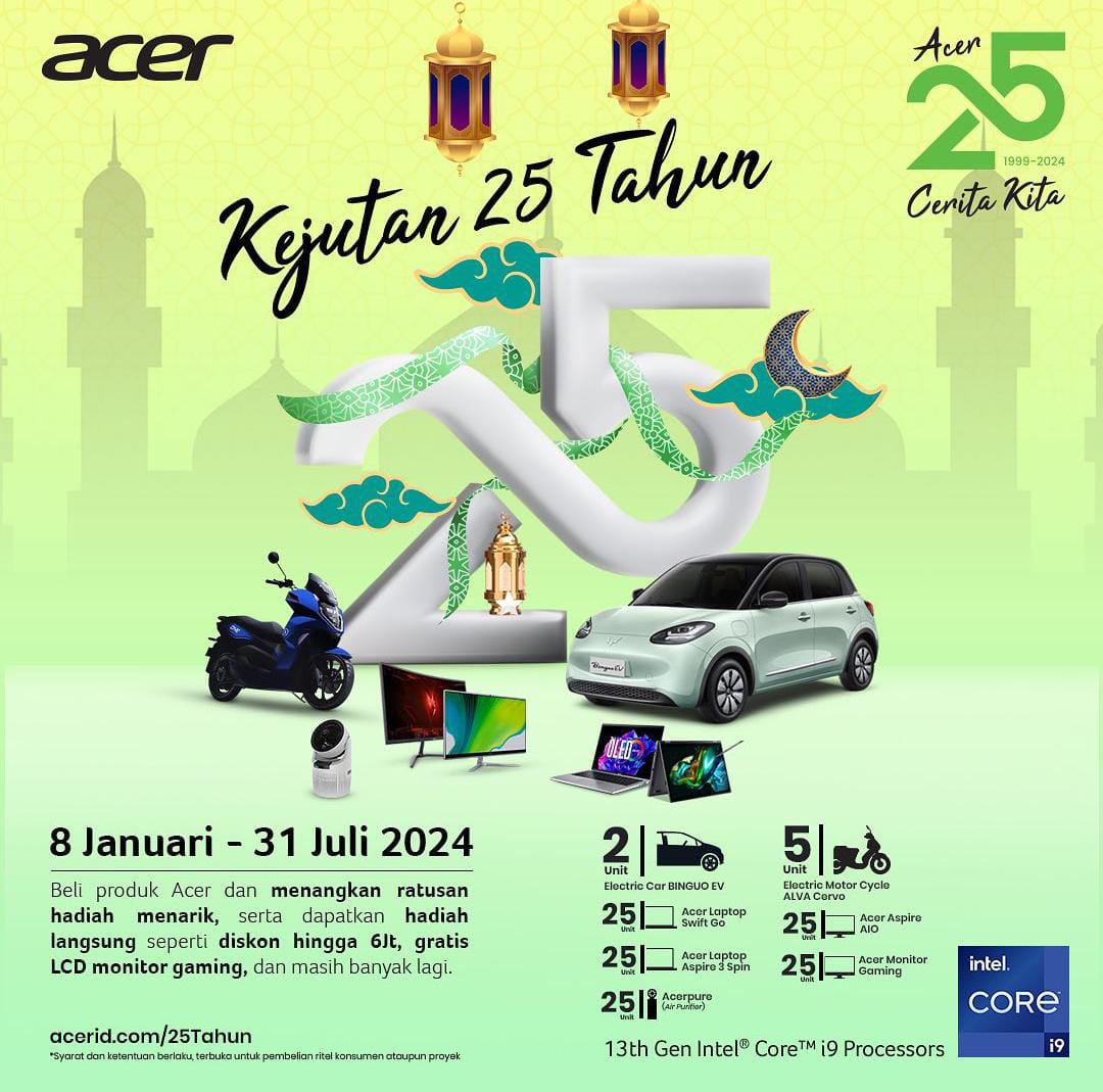 Kesempatan ini terbuka bagi seluruh pelanggan Acer, baik individu maupun institusi, dengan periode pembelian mulai dari 8 Januari hingga 31 Juli 2024. Untuk informasi lebih lanjut, bisa mengunjungi situs resmi Acer Indonesia. (*)