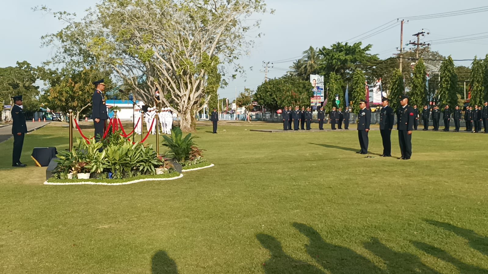 Upacara dipimpin langsung oleh Danlanud Dhomber, Kolonel Pnb David Ali Hamzah dan diikuti oleh pasukan dari personel Lanud Dhomber. Upacara juga dihadiri oleh pejabat di lingkungan Lanud Dhomber serta Ibu PIA Ardhya Garini Lanud Dhomber.