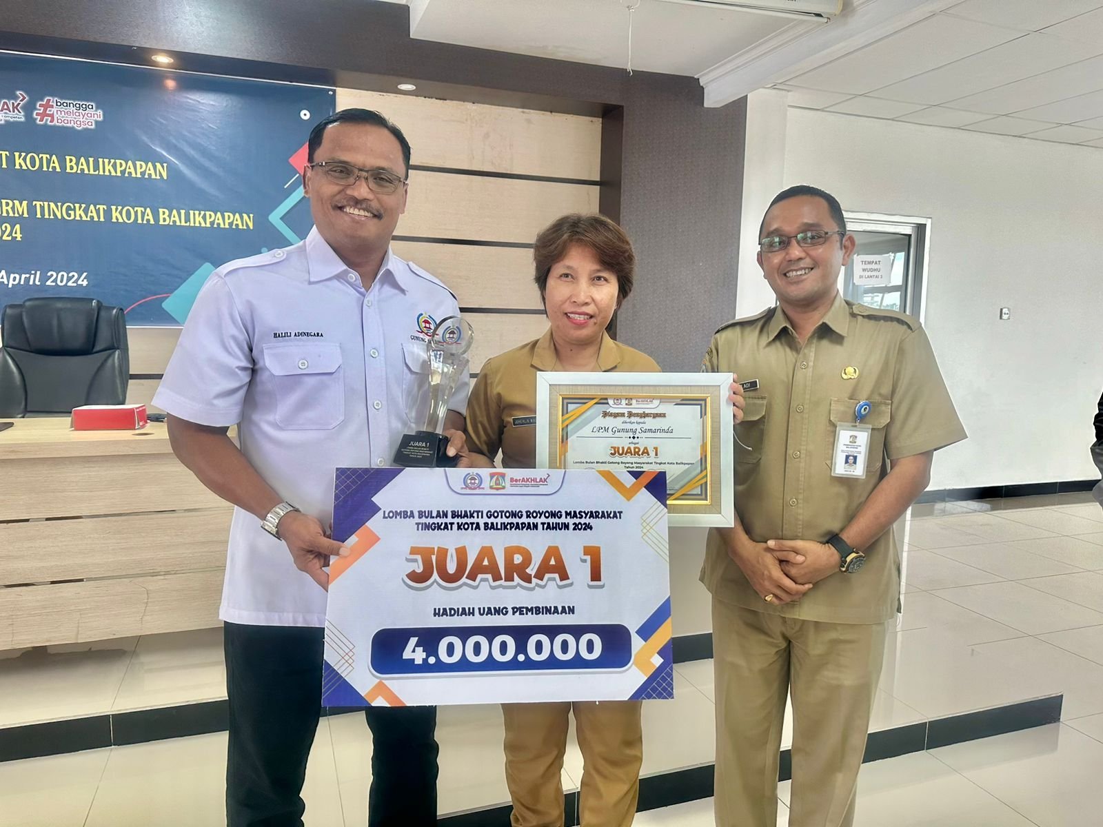 BorneoFlash.com, BALIKPAPAN - Lembaga Pemberdayaan Masyarakat (LPM) Kelurahan Gunung Samarinda berhasil meraih Juara Pertama Lomba Bulan Bakti Gotong Royong Masyarakat (BBGRM) Tingkat Kota Balikpapan Tahun 2024.