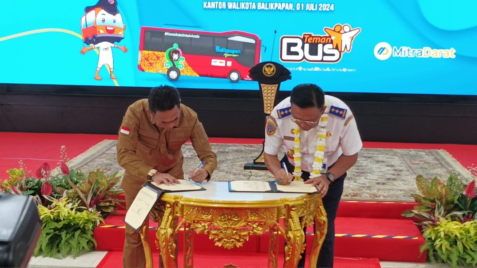 BorneoFlash.com, BALIKPAPAN - Wali Kota Balikpapan H. Rahmad Mas'ud bersama Direktur Jenderal (Dirjen) Perhubungan Darat Kementerian Perhubungan, Irjen Pol Risyapudin Nursin melakukan penandatanganan nota kesepakatan.