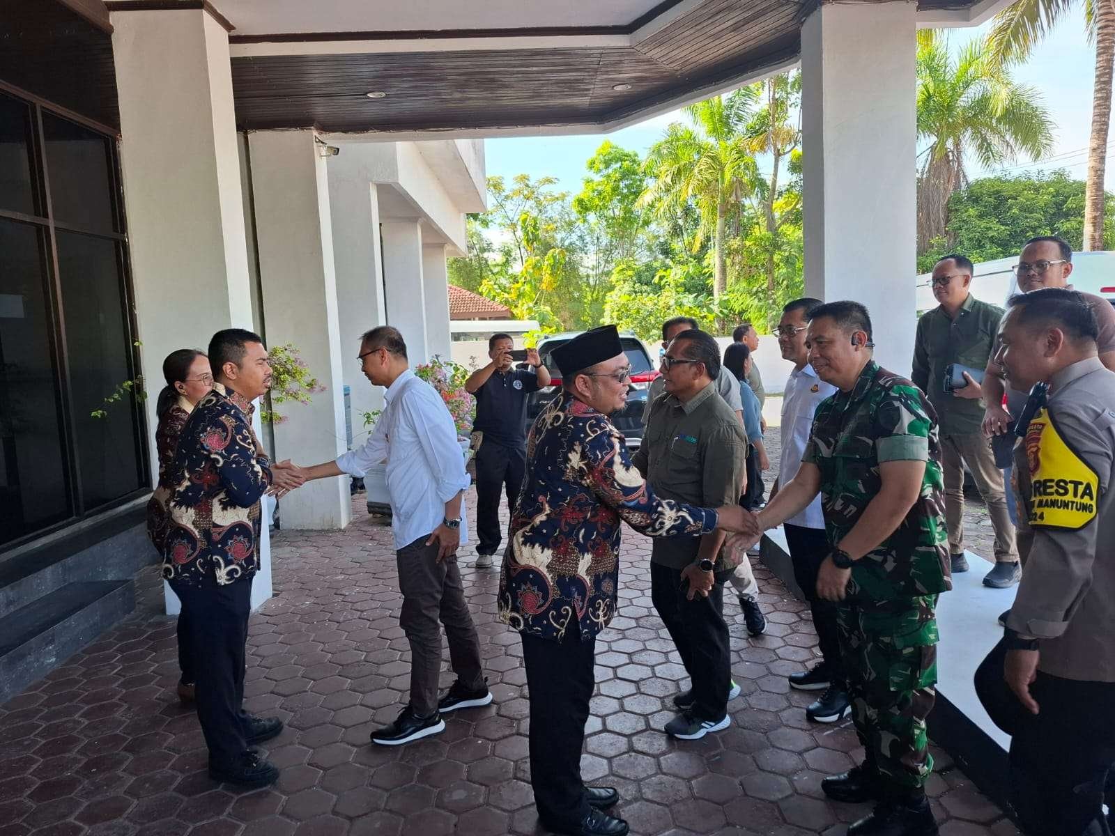 Pjs Wali Kota Balikpapan, Ahmad Muzakkir bersama Forkopimda dan unsur pemerintah kota balikpapan mengunjungi ke Kantor KPU Balikpapan. Foto: BorneoFlash/Niken Sulastri