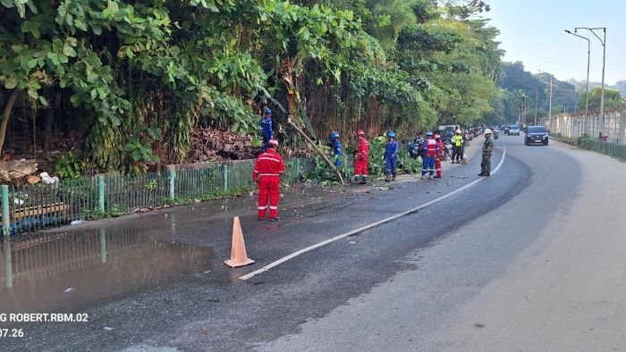 BorneoFlash.com, BALIKPAPAN – Suasana pagi di sekitar area pagar kilang Pertamina RU V Balikpapan, pada Kamis (16/10/2025), tampak berbeda dari biasanya. Sejumlah petugas berseragam merah dan biru lengkap dengan alat keselamatan tampak sibuk memangkas ranting dan membersihkan dedaunan.