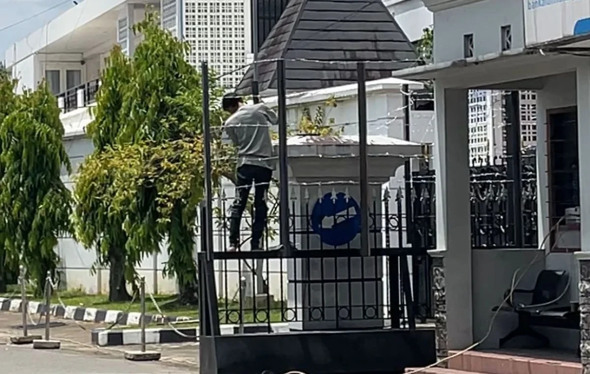 Hingga Senin pagi sekitar pukul 11:00 WITA, proses pemasangan kawat berduri masih berlangsung di sejumlah sisi pagar sebagai bagian dari langkah antisipatif menghadapi potensi kerawanan saat aksi.