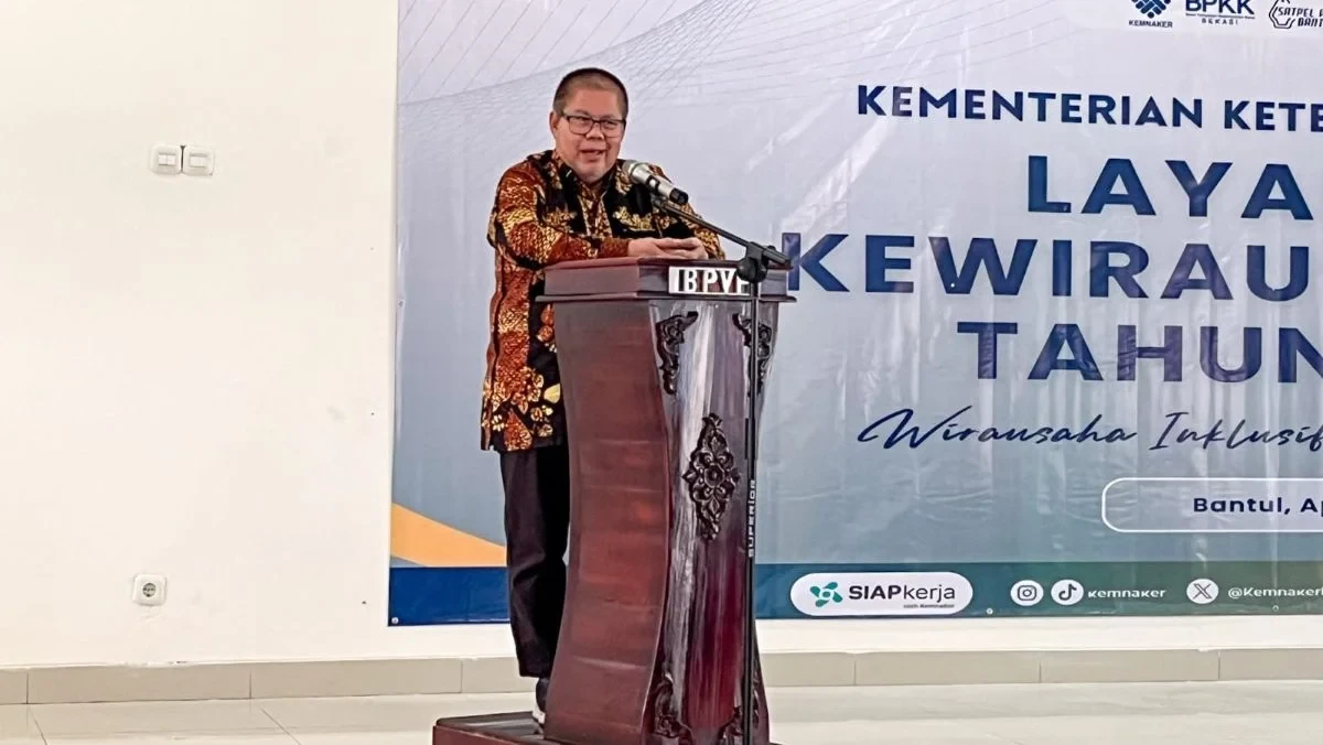 Hal tersebut disampaikan Staf Khusus Menteri Ketenagakerjaan, Sukro Muhab, saat membuka Kegiatan Layanan Kewirausahaan 2026 bertema “Wirausaha Inklusif, Tumbuh Bersama”, di Bantul, pada Jumat (17/4/2026).